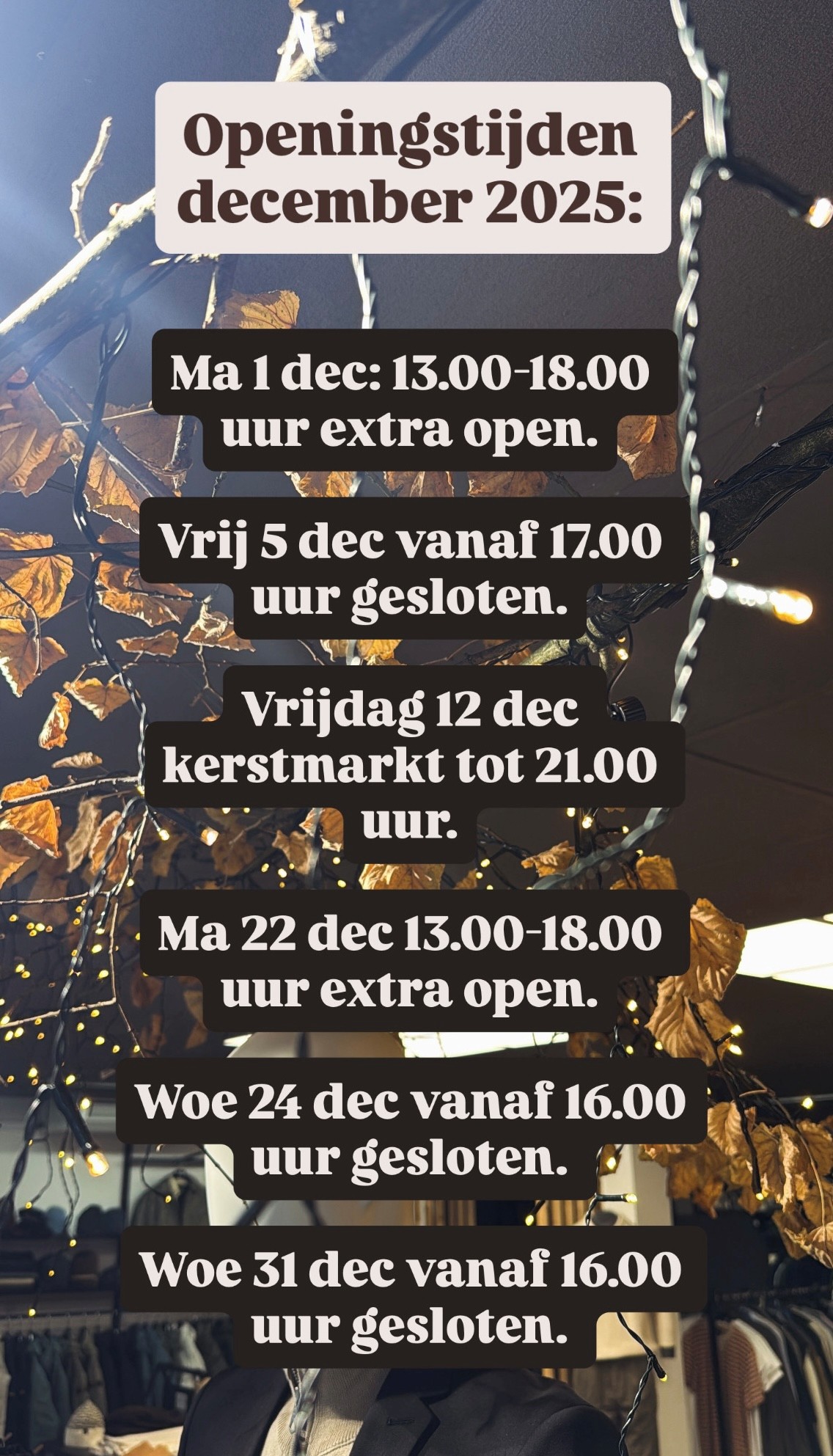 Openingstijden Wil jij iets weten over een bepaald item of heb je een andere vraag ? Bel 033 258 8599 of app naar 06 11 12 4057 Openingstijden Elke donderdag en vrijdag koopavond tot 20.00 uur.