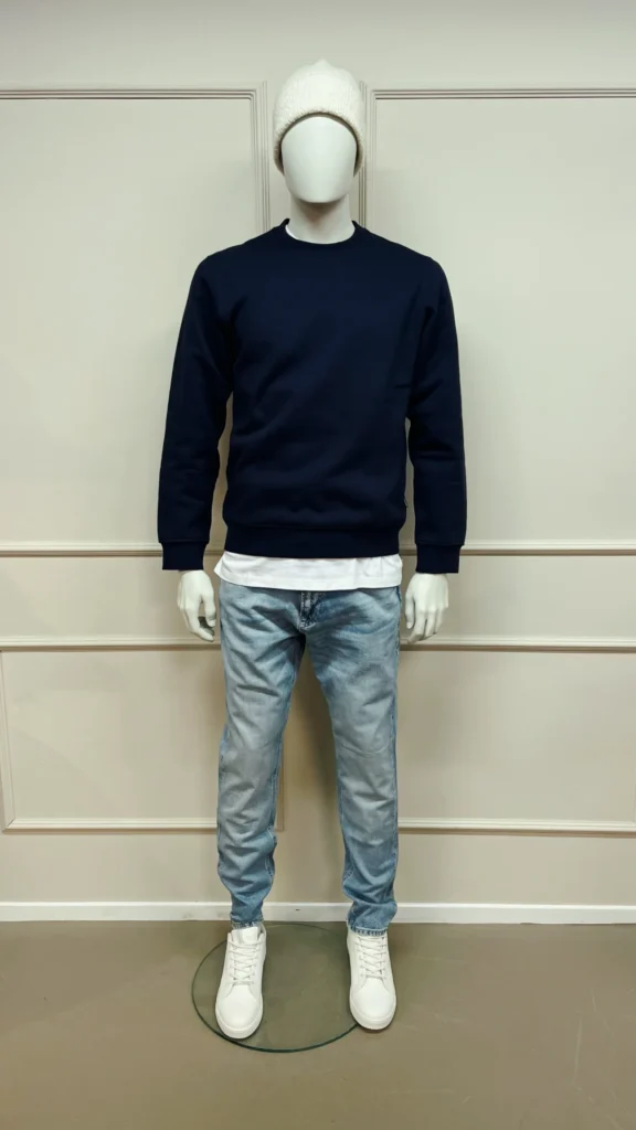 Sweater Denham €99,- jeans Cast Iron €139.99, sneakers Jack&Jones €59.99